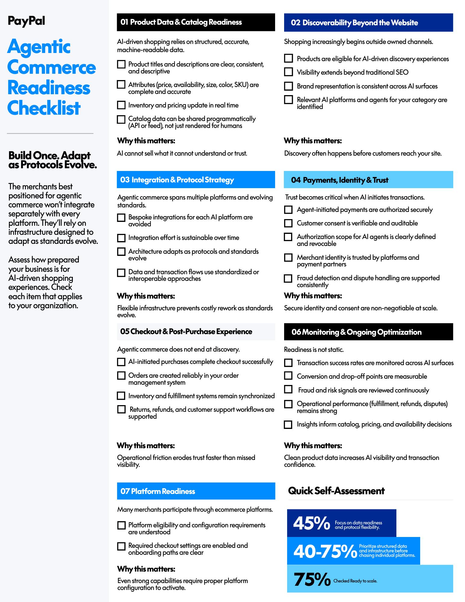 Use this checklist to assess how prepared your business is to participate in AI-driven shopping experiences, and where to focus first as the ecosystem evolves.